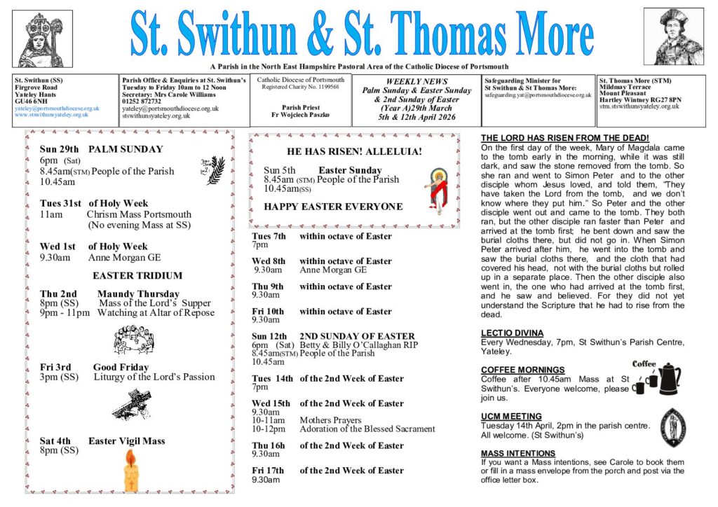 Please find this week’s parish newsletter below. Palm sunday & Easter newsletter PDF You may read the newsletter online or download it for later use.